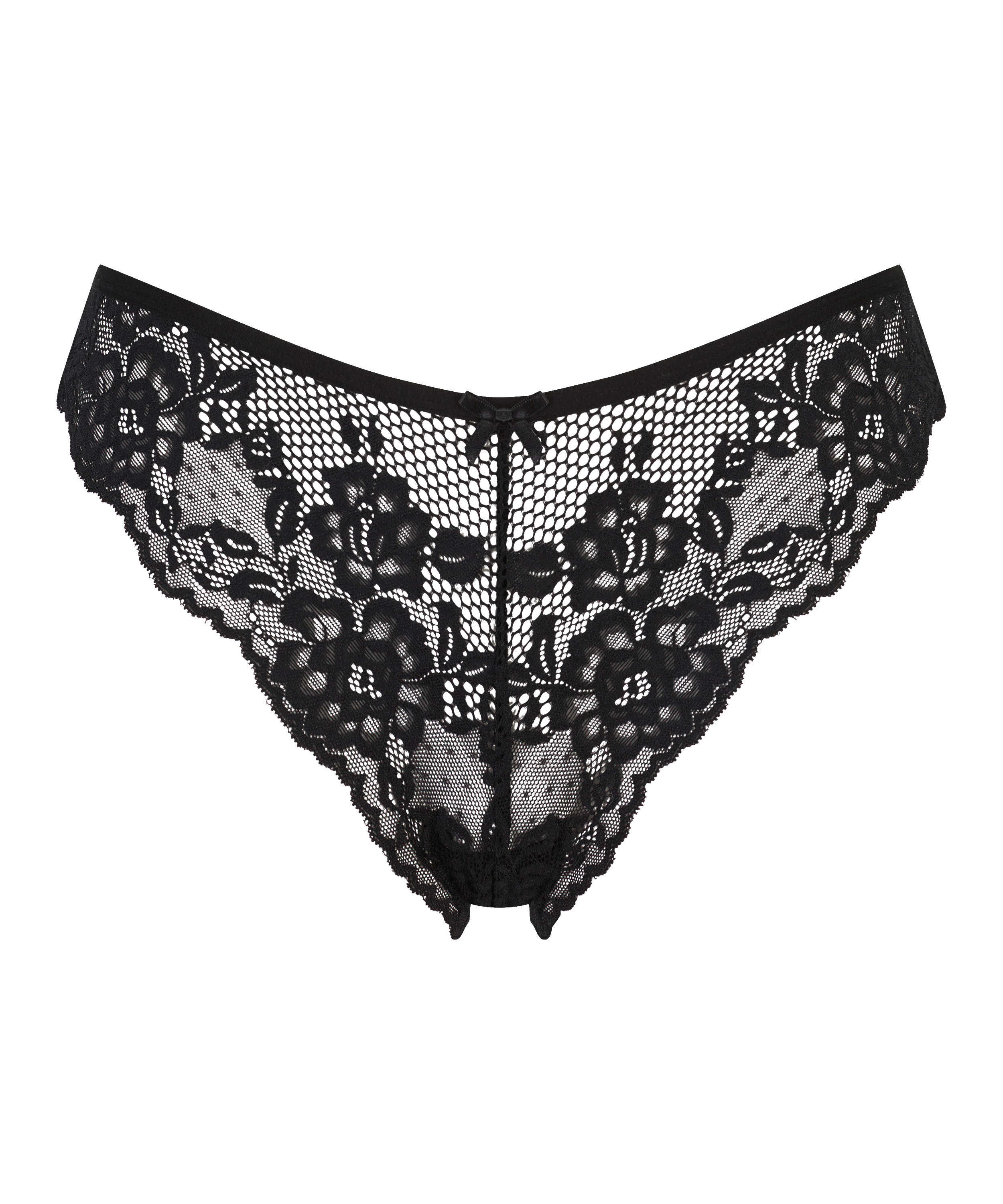 Dieser Brazilian ist semitransparent und mit viel Spitze besetzt. Die kleine Schleife auf der Vorderseite rundet den Brazilian perfekt ab!