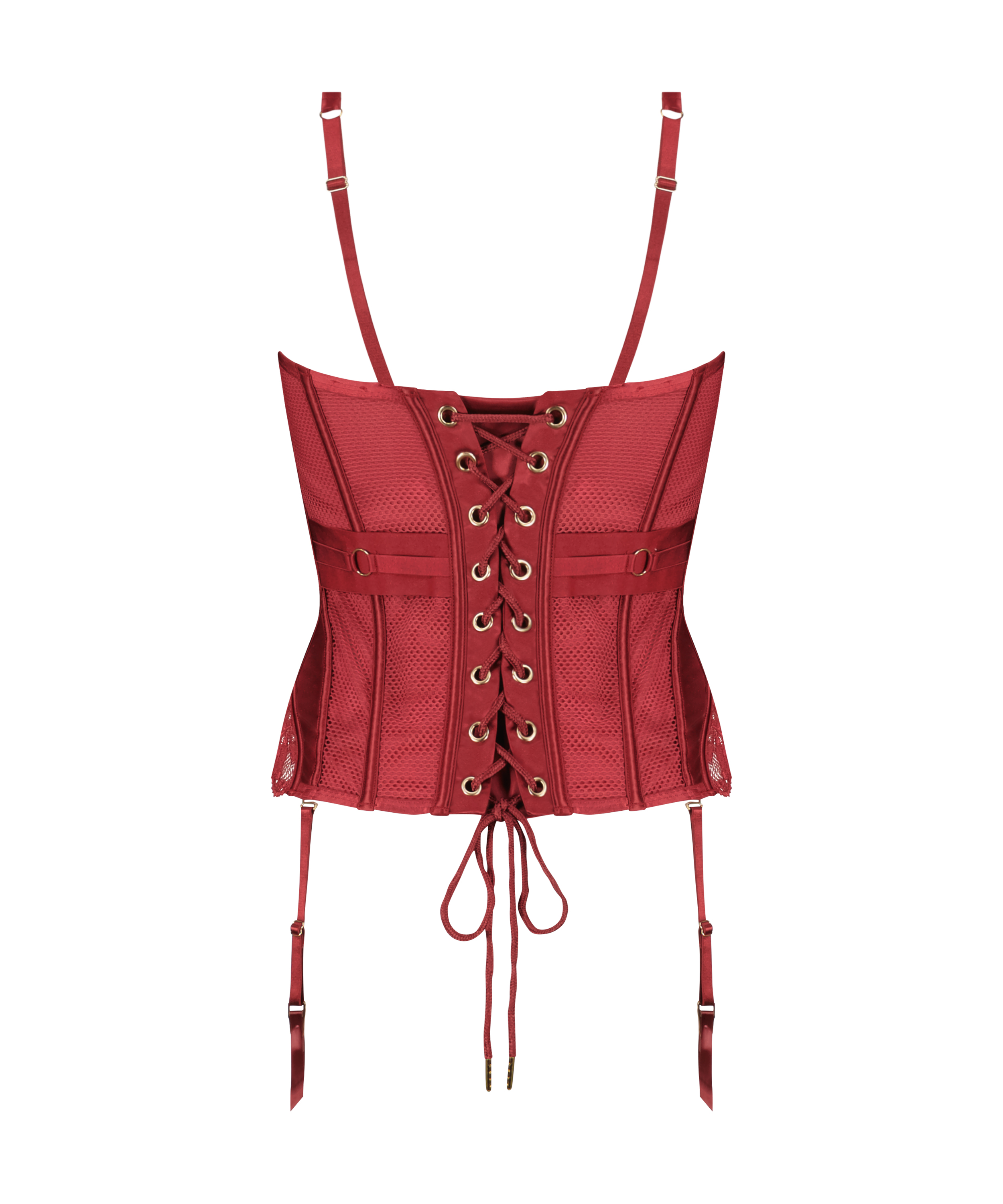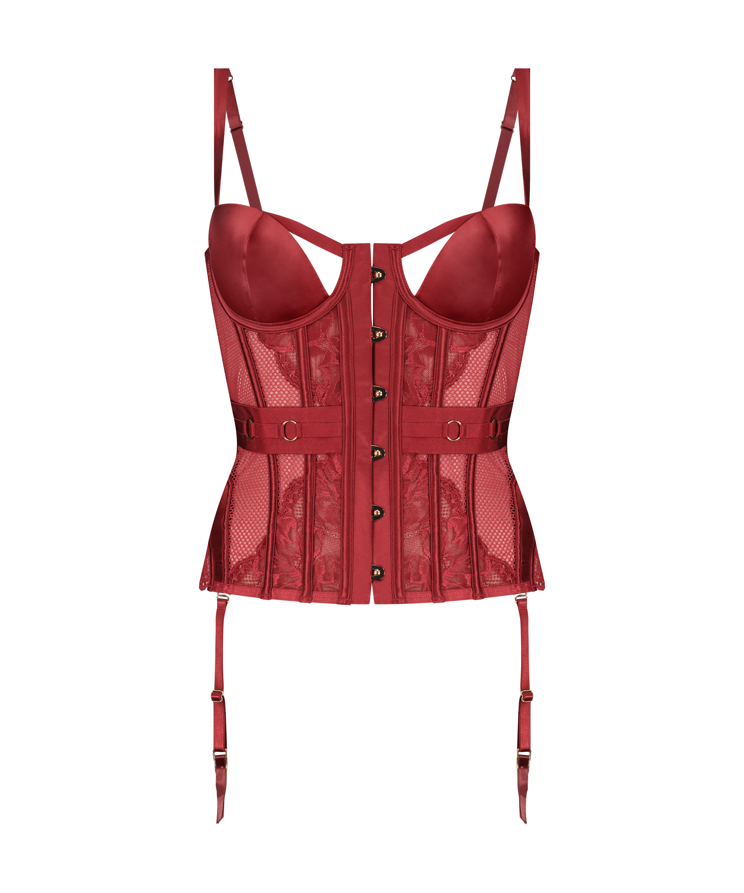 Entdecke das Verführerische in dir mit diesem sexy Bustier! Aus transparentem Netzmaterial, verziert mit viel Spitze. Die Cups mit Bügel sind aus einem Satin-Material. Es hat einen Frontverschluss mit heißer Hardware. Die Stäbchen vorn und hinten sorgen für ein angenehmes Tragegefühl und die Riemchendetails um die Taille tragen zu einem Miederlook bei. Es besteht die Möglichkeit, den Rücken mit einer Spannseil zu straffen, um die perfekte Passform zu garantieren. Finde den dazu passenden Slip und kombiniere Strümpfe, um das Set zu vervollständigen!