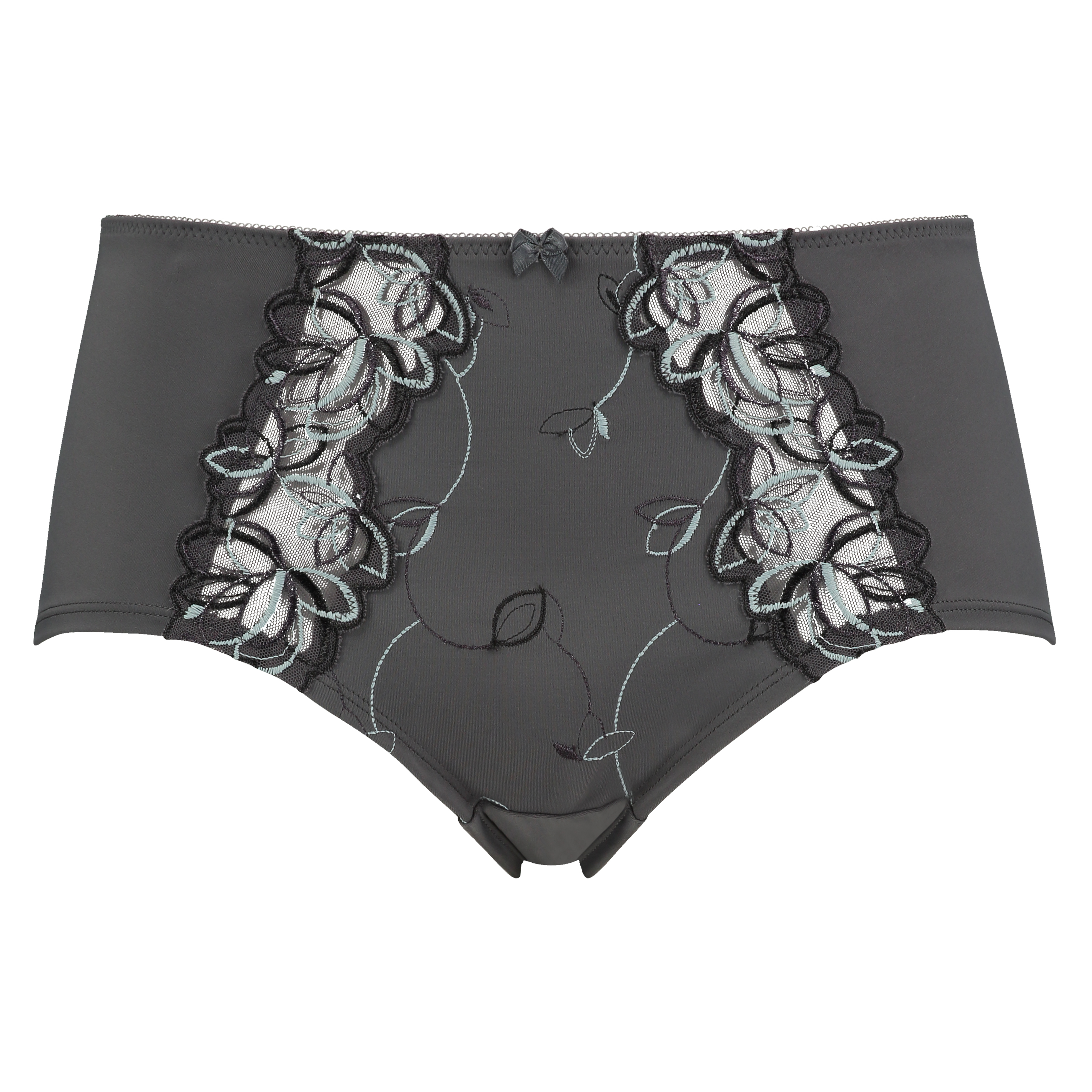 Dieser hochgeschnittene Slip ist aus einem geschmeidig fallenden Material, das für eine angenehme Passform sorgt. Der Slip ist vorne mit Blumenstickerei und einer Schleife verziert.