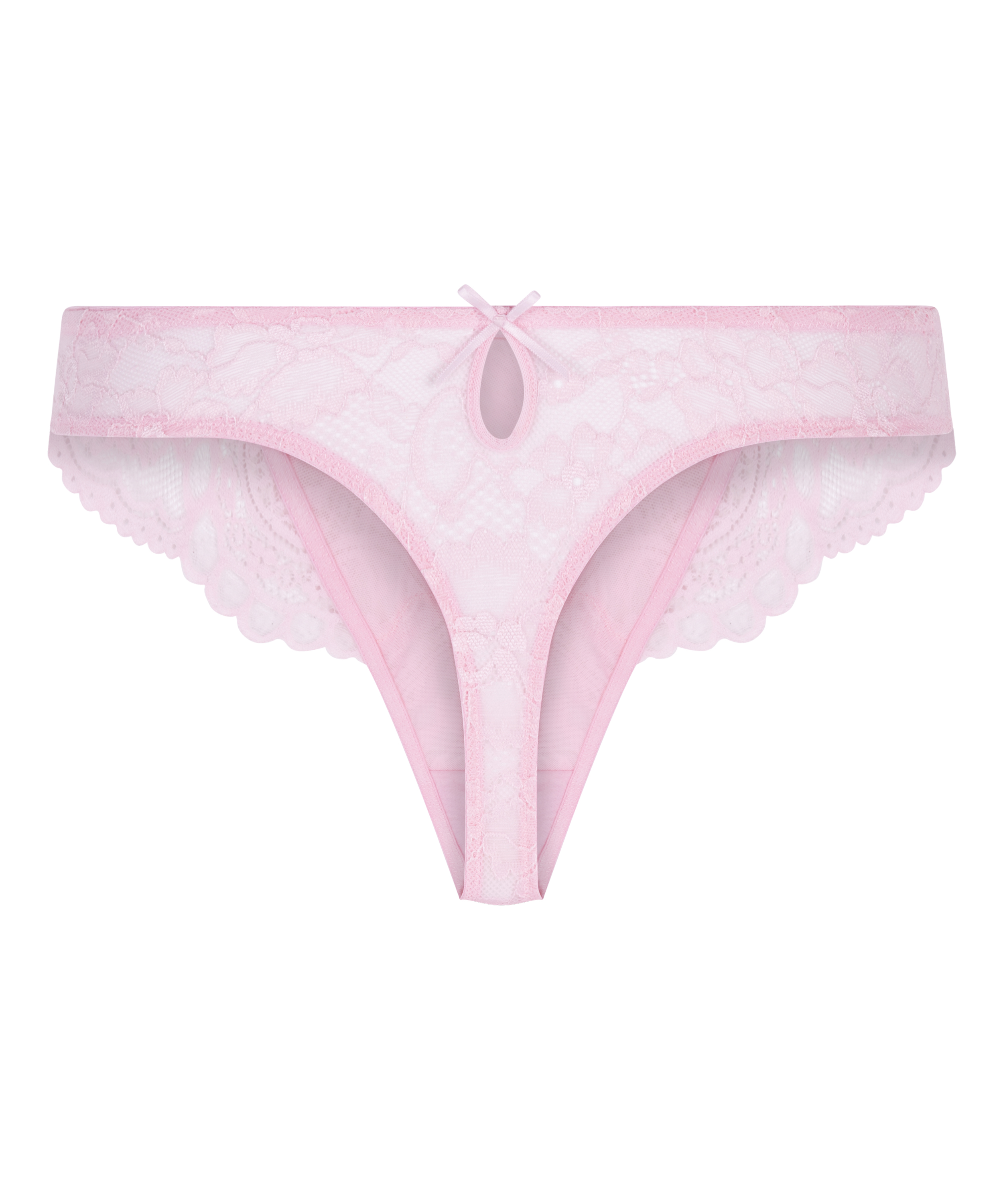 Ein bisschen Spitze schadet nie! Dieser String ist mit halbtransparenter rosa Spitze veredelt. Tragen Sie ihn mit einem passenden BH für einen kompletten Look.