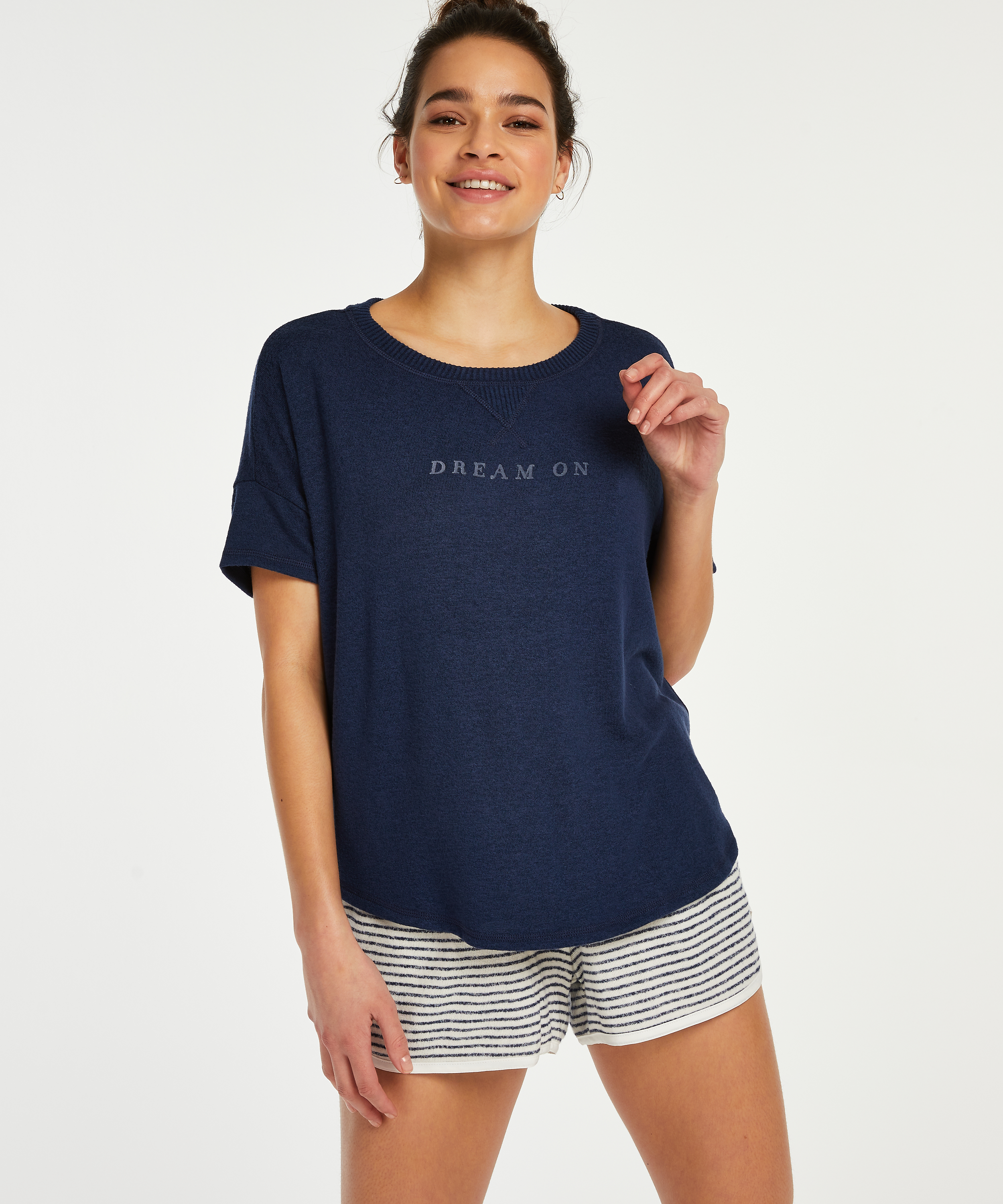 In diesem Pyjamatop schlafen Sie garantiert wunderbar! Es hat kurze Ärmel und einen Rundhalsausschnitt. Das Top ist etwas weiter geschnitten, so dass es genug Bewegungsfreiheit bietet. Kombinieren Sie es mit der passenden Pyjamahose für ein komplettes Set!