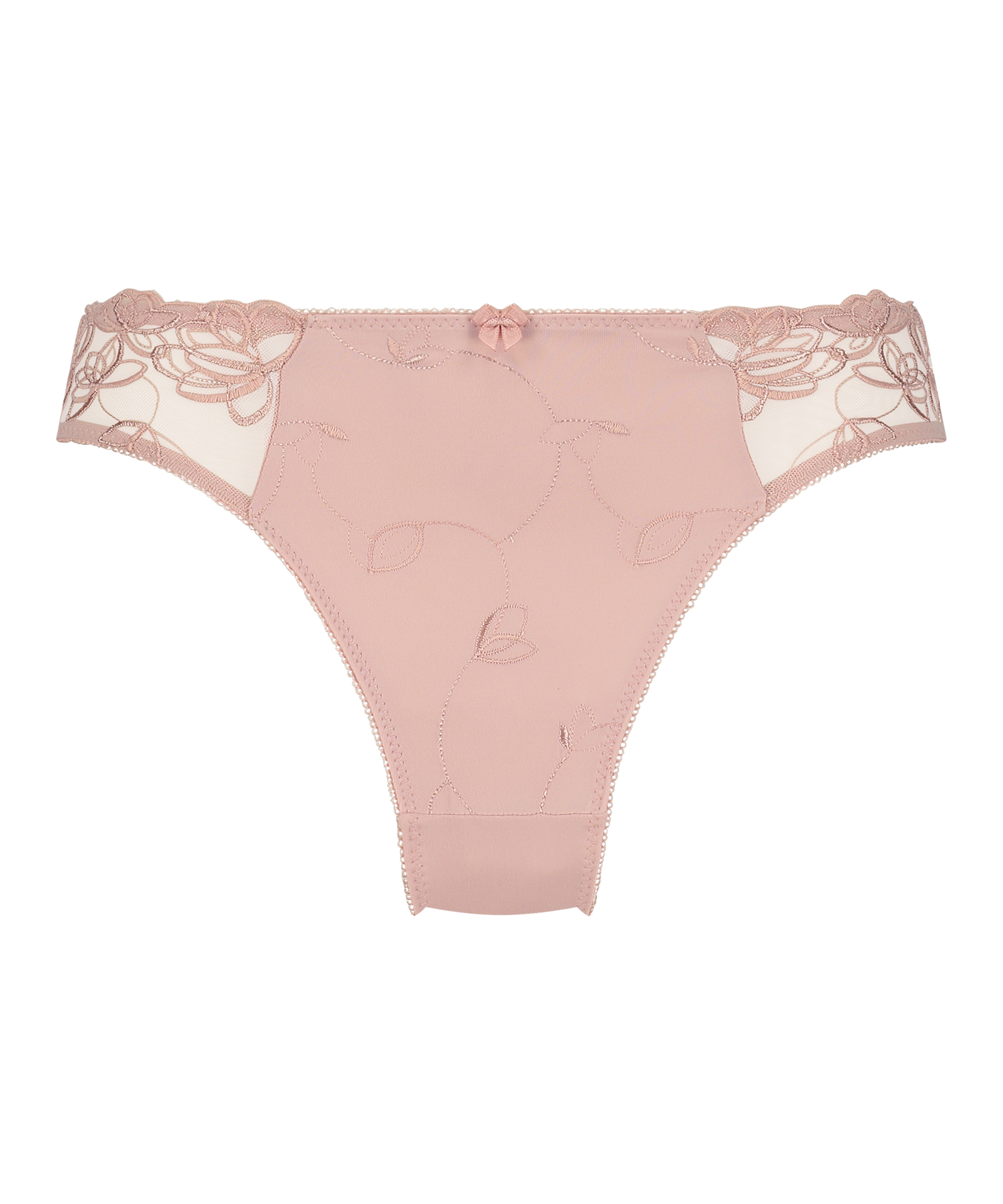 Dieser Slip ist aus einem geschmeidig fallenden Material, das für eine angenehme Passform sorgt. Der Slip ist vorne mit Blumenstickerei und einer Schleife verziert.
