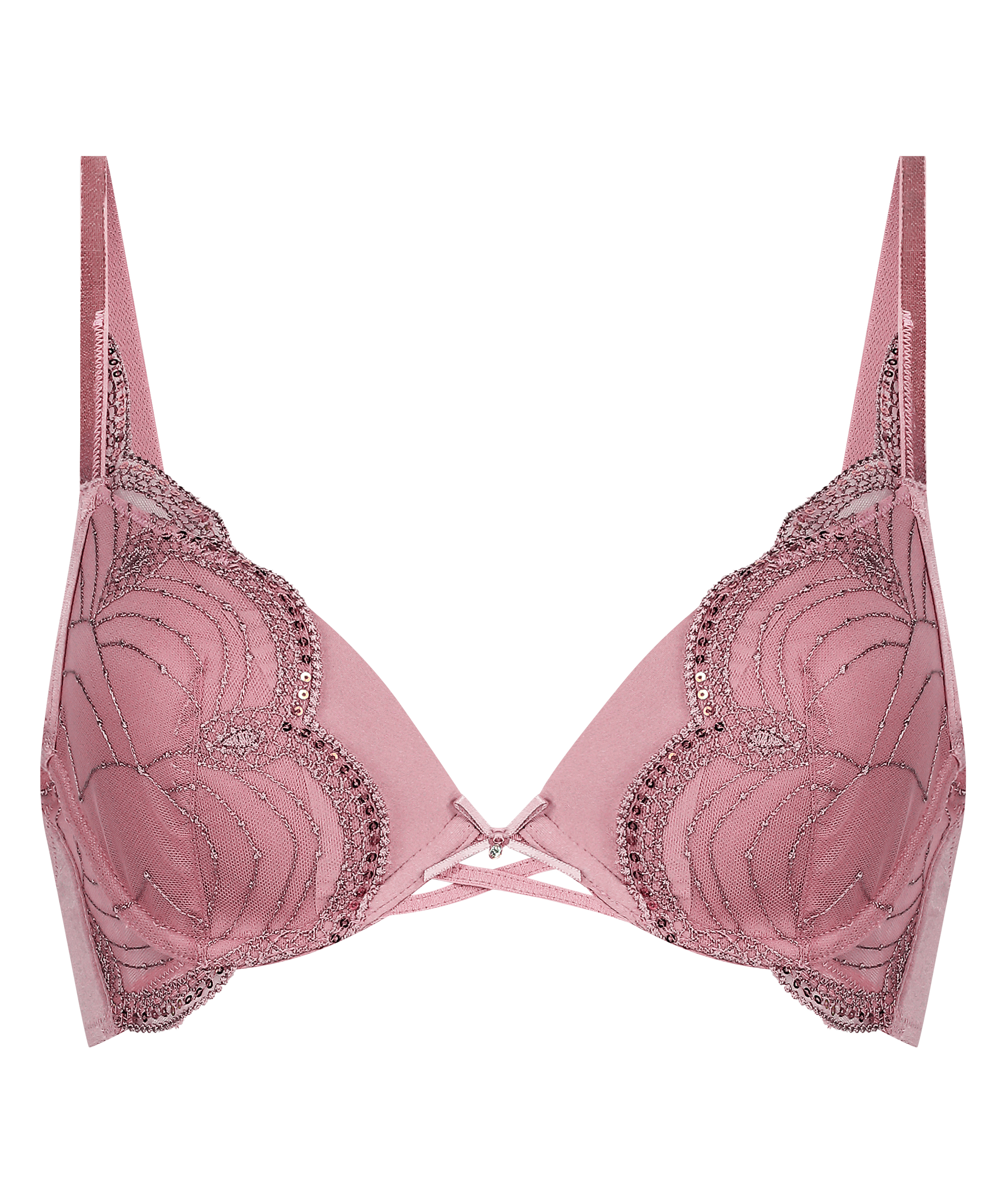 Dieser gepolsterte BH sitzt super und hat feine Spitzendetails mit einem Hauch Glitzer von den Pailletten! Das gekreuzte Spitzendetail vorne bringt einen flirty Touch, und die glatten Cups sorgen den ganzen Tag für mega Komfort. Kombiniere ihn mit den passenden Teilen für ein atemberaubendes Set!